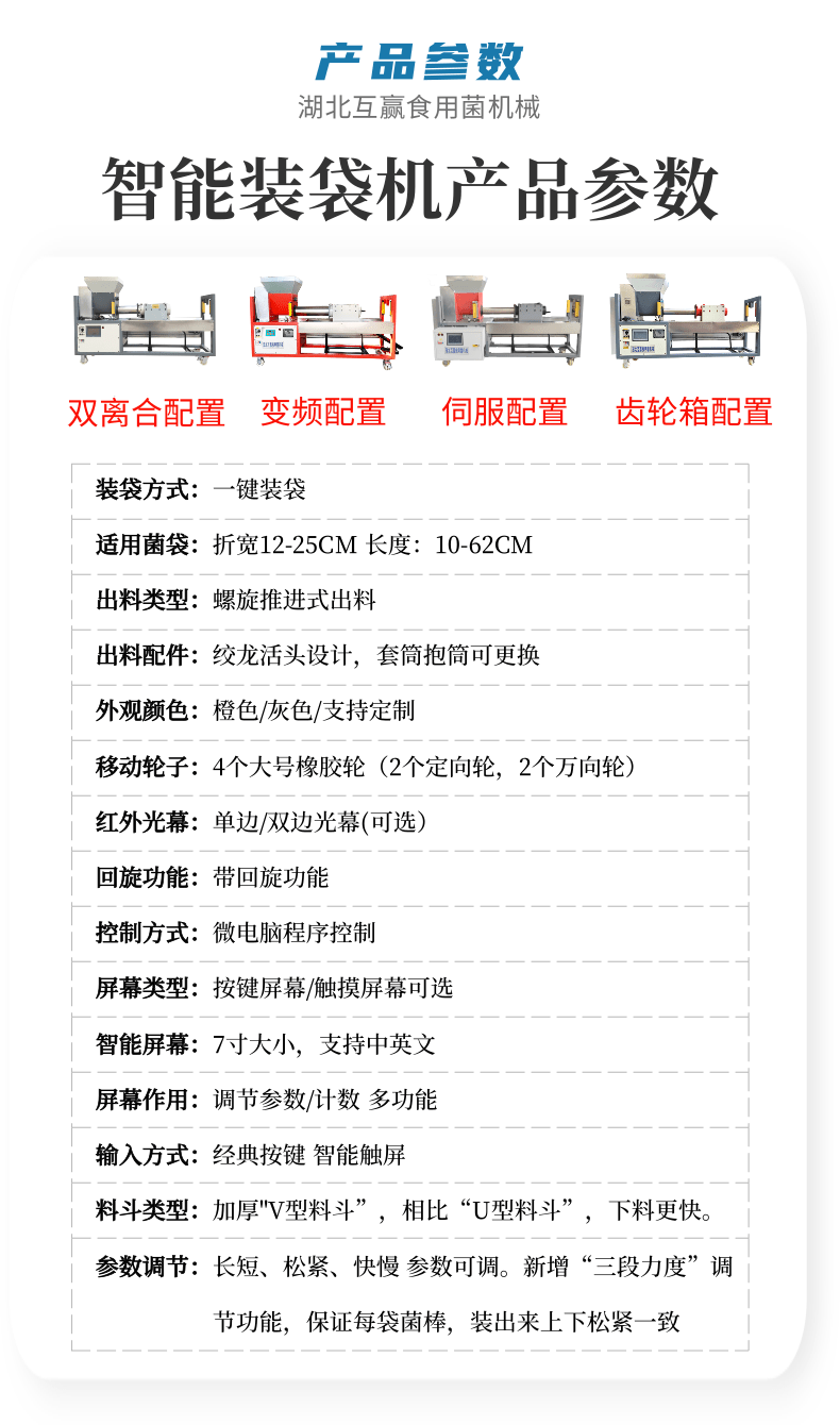 近年來代料香菇裝袋機(jī)的發(fā)展,越來越迅猛。其規(guī)模不斷擴(kuò)大,品種不斷增多,地域限制越來越少。是農(nóng)民增收的可靠保障,也是地方政府的經(jīng)濟(jì)支柱。自動套袋食用菌裝袋機(jī)廣泛用在香菇、木耳、平菇、金針菇、茯苓、灰樹花、姬菇、秀珍菇等食用菌種植領(lǐng)域。是工廠、基地、合作社、家庭農(nóng)場理想的工廠化生產(chǎn)機(jī)械。生產(chǎn)規(guī)模的大小可根據(jù)資金、銷售量、經(jīng)營方式、技術(shù)力量、資源條件等綜合因素來確定,可用單機(jī),也可組合設(shè)計成半機(jī)械化...